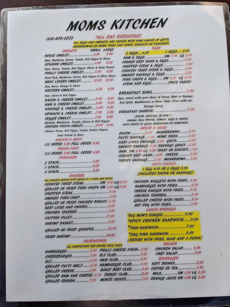 With glowing reviews praising the friendly service and delicious offerings, Mom's Kitchen promises an experience that leaves you eager for more. Whether you're after a quick bite or a leisurely meal, this hidden gem welcomes you with open arms and a full plate.
